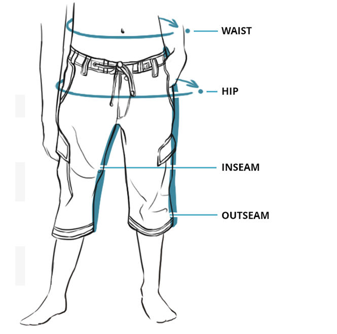 Whether you're popping out of your private plane to go rare bird watching in the highlands, trekking through the tropical rain forest, or wading up to the shores of a secluded island, these rip cord-waisted half-khakis are built for all possible worlds of adventure. Molecule's Panama Parachute Pants have nice accessories to help you stand out – front-tie cords with metal eyes, the Molecule logo printed on green canvas and sewn onto the cargo pocket, camo material on the inside of the pocket flaps, and pop-fasten pockets. Please check your hip and waist measurements – the best way of checking fit is to compare the flatbelt and the front/back rise against similar clothes that fit you well.